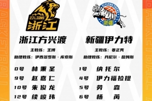 体育资讯1月9日讯 今晚7点35分,广厦男篮将在主场迎战新疆男篮。