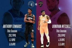 而赛季至今,爱德华兹场均29.2分5.1篮板3.8助攻,米切尔则为29.8分4.8篮板5.5助攻。