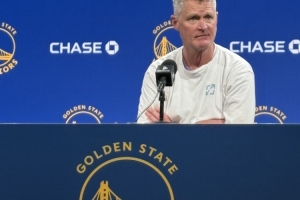 科尔:说实话,我为他(的处境)感到失望(I’m disappointed for him that),因为事情并没有像前几周那样继续发展下去。与此同时,一开始本来就会很棘手。JK、吉米(巴特勒)、德雷蒙德(追梦),你知道的,打二号位、三号位和四号位。我想,任何人都能看出来,这是一个很难搭配的组合,单从五人阵容的投射能力来看就是如此。有时候,斯蒂芬(库里)可以凭一己之力弥补所有空间问题,他就是这么出色。但在现代 NBA里,我认为这样做会非常困难,而我们也意识到了这一点。我们确实给了那套阵容几周时间,但最终,我认为那套阵容的弱点暴露出来了,这也是为什么我们选择了不同的方向。