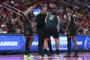 小贾巴里·史密斯状态奇差,整个第四节8投0中!饶是如此,火箭主教练乌度卡末节还是给了小贾巴里·史密斯10分钟的出场时间(注:伊森伤退)。