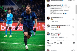 恰尔汗奥卢赛后在社交媒体上写道:“两度领先却未能全取三分,令人扼腕。但我们仍将携手前行。专注于下一场。”
