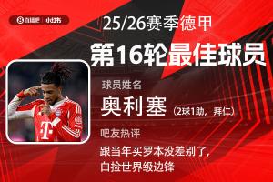 第16轮评选结果出炉,拜仁前锋奥利塞2射1传,助球队8-1狂胜沃尔夫斯堡,奥利塞获得超过25000名吧友的支持,当选【体育资讯X小红书德甲第16轮最佳球员】!