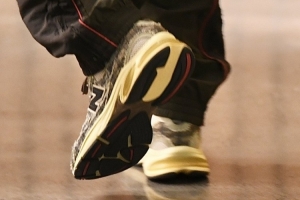 赛前库里入场,他今天穿的是一双Joe Freshgoods x New Balance 2010 款球鞋。