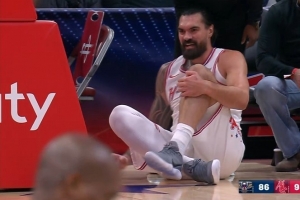 相关新闻:不要啊!亚当斯防守落地左腿受伤了 起不来啊 被搀扶回更衣室