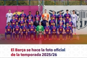 巴塞罗那足球俱乐部一线队于本周一拍摄了2025/26赛季的最新官方全队合影。照片在甘伯体育城的蒂托·比拉诺瓦球场拍摄,汉斯·弗里克麾下的所有球员都出现在照片中,包括受伤的加维和克里斯滕森以及冬窗新援坎塞洛。