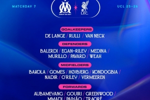 马赛对阵利物浦大名单