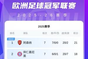 欧冠晋级16强概率:阿森纳拜仁锁定,利物浦94%,尤文国米个位数