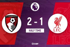 半场-利物浦暂1-2伯恩茅斯 范戴克失误送礼后头球破门戈麦斯伤退