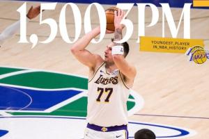 到目前为止,东契奇(26岁331天)已经投进两记三分,常规赛生涯三分命中数突破1500,历史最年轻(此前为塔图姆、26岁362天)。