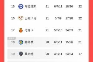 体育资讯01月26日讯 西甲第21轮战罢多场,目前的积分榜上,下半区所有球队都在为保级而战。
