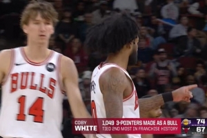 注:公牛队史最高是拉文的1130记三分,辛里奇也命中1049记三分