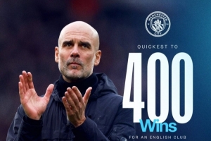 此役是瓜迪奥拉执教曼城的第400场胜利,他用569场比赛达成这一里程碑,成为执教单一英格兰俱乐部最快达成400胜的教练。曼城官方社媒晒出海报,配文:“最伟大的。”