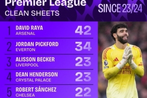 体育资讯2月8日讯 阿森纳在本轮英超3-0完胜桑德兰,数据统计显示,拉亚是近3个赛季零封次数最多的英超门将。
