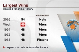 2026年1月 尼克斯大胜篮网54分