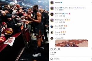 今天哈登更新INS晒出昨日赛前和赛场瞬间,写道:“感谢克利夫兰 #让大家都知道 #Uno”