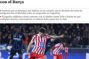 体育资讯02月20日讯 据《世界体育报》报道,马竞前锋阿尔瓦雷斯的身边人士否认了昨日称球员本人将转会巴萨的消息。