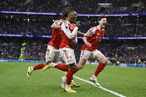 体育资讯02月23日讯 英超第27轮,阿森纳4-1热刺,埃泽梅开二度。