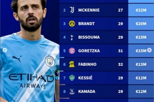 B席(曼城),目前身价2700万欧元