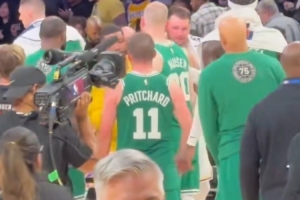 GIF-斯玛特与绿军球员寒暄