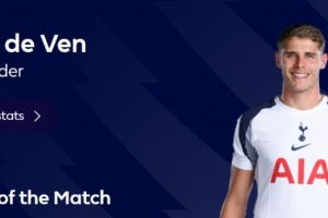 本场比赛热刺后卫范德芬送出助攻,赛后也当选英超官方球迷票选全场最佳球员。